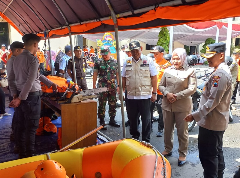 Bupati Grobogan Setyo Hadi, Kapolres Grobogan AKBP Ike Yulianto, Ketua DPRD Lusia Indah Artani, Kodim, Kejari Grobogan didampingi Kalak BPBD Grobogan Wahju Tri Darmawanto menyempatkan mengecek peralatan.