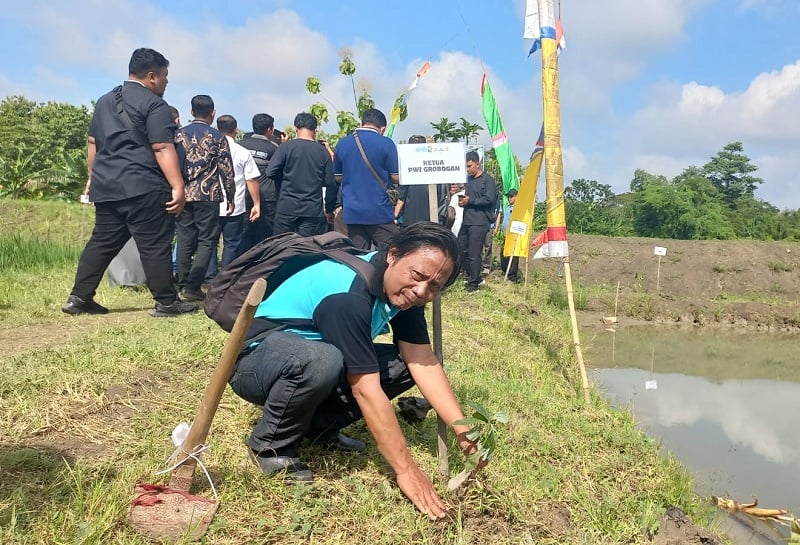 GROBOGAN,iNewsMuria.id - Aksi nyata peduli lingkungan dan upaya pencegahan banjir dilaksanakan mahasiswa dengan sejumlah pihak terkait dengan penanaman bibit pohon di dekat tanggul sungai, Rabu (4/2/2026).