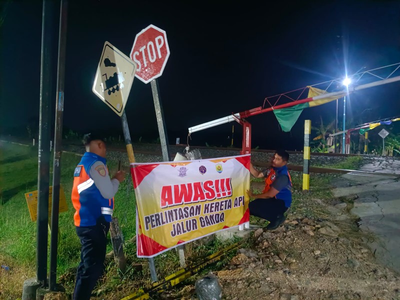 Selain sosialisasi, upaya pencegahan kecelakaan di perljntasan kereta api saat Lebaran 2026 juga dilaksanakan jajaran Dishub Grobogan dengan memasang spanduk peringatan di sejumlah perlintasan KA di Kecamatan Toroh.