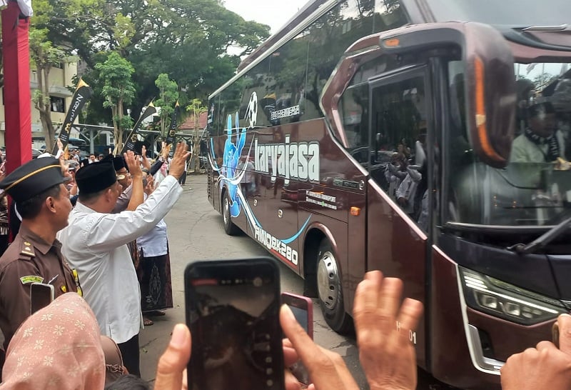 GROBOGAN,iNewsMuria.id - Bupati Grobogan Setyo Hadi bersama Forkompimda melepas keberangkatan jemaah haji kloter 29 sebanyak 171 jemaah di halaman Kantor Pemkab Grobogan, Kamis (30/4/2025).